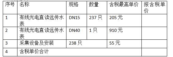二、采購(gòu)需求:有線光電直讀遠(yuǎn)傳水表DN15(237只)、DN40(1只),采集設(shè)備及安裝