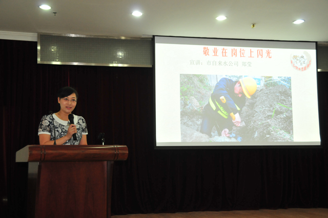 如圖:公司宣講員鄭瑩同志正在宣講王煒同志的先進(jìn)事跡