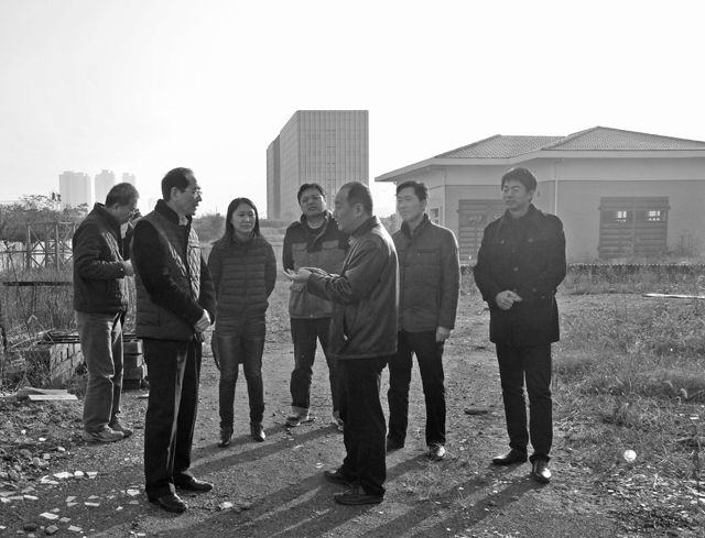 如圖:城投公司總經(jīng)理、黨委副書記陳澤云一行實(shí)地查看鐘山加壓站建設(shè)情況