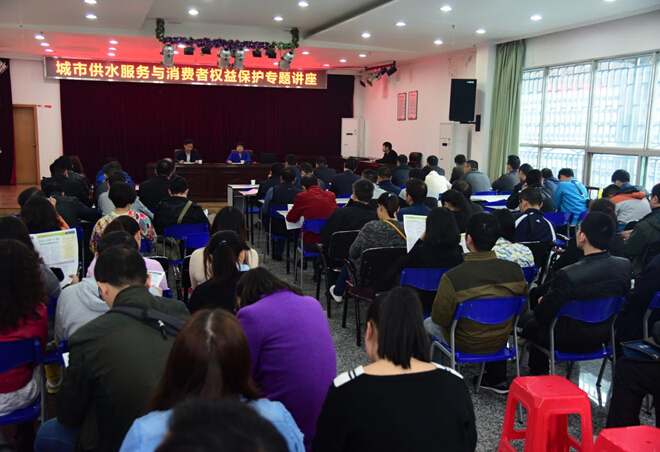 為進一步提高“兩學一做”學習教育實效性和針對性,10月27日下午,公司在二樓會議室舉辦“城市供水服務與消費者權益保護”專題講座,邀請市消費者委員會柯佳玲秘書長作專題宣講。公司黨委書記余曦同志主持講座,公司客服中心、經營銷售公司、管網維護公司、市場開發(fā)辦、改水辦等窗口服務單位、部門的干部職工共80余人參加了此次講座。