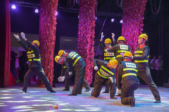 節(jié)目籌備期間,公司領(lǐng)導(dǎo)高度重視,三個(gè)節(jié)目均安排專人負(fù)責(zé)協(xié)調(diào)指導(dǎo),要求公司工會的同志們挑選優(yōu)秀的青年組建演出隊(duì)伍。在公司各基層單位的積極配合下,挑選出的青年職工克服演出時(shí)間緊、任務(wù)重的困難,齊心協(xié)力排練好演出節(jié)目。比如水廠運(yùn)行班的職工,剛剛下了夜班,顧不上休息,就投入到緊張排練中;有的抄表收費(fèi)人員,為了工作和排練兩不耽誤,在寒冷的冬天早上6點(diǎn)鐘就出門抄表了……正是這樣一群不怕吃苦,勤奮認(rèn)真的青年,在演出過程中激情表演,最終音詩畫《決戰(zhàn)冰雪》榮獲二等獎(jiǎng)。