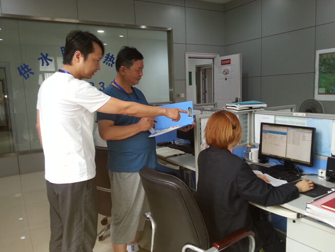 圖為:紀(jì)檢員在“供水服務(wù)熱線”對(duì)用戶來電故障報(bào)修、反映問題等落實(shí)情況進(jìn)行檢查。