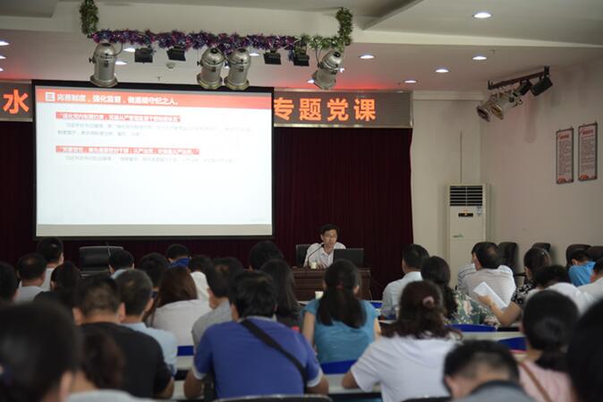 為進(jìn)一步加強(qiáng)黨員干部廉政教育,保障供水企業(yè)健康發(fā)展,6月15日,公司舉行了廉政教育專題黨課。公司全體中層干部,機(jī)關(guān)、營(yíng)銷、工貿(mào)黨支部全體黨員共120余人參加了活動(dòng)。