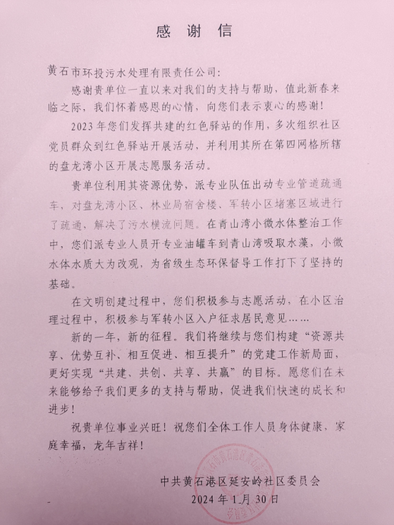 自創(chuàng)建“紅色驛站”以來(lái),我們發(fā)揮技術(shù)優(yōu)勢(shì),為黨員群眾提供管網(wǎng)疏通等志愿服務(wù),截止目前污水公司已派出專業(yè)隊(duì)伍開(kāi)展志愿疏通服務(wù)15次,疏通惠及社區(qū)群眾1000多戶,下一步污水(排水)公司將以“紅色驛站”為載體,聯(lián)合延安嶺社區(qū),積極擴(kuò)大企業(yè)的社會(huì)影響力,為優(yōu)化我市營(yíng)商環(huán)境展現(xiàn)國(guó)企擔(dān)當(dāng)。