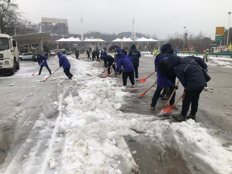 市水務(wù)集團(tuán)應(yīng)急隊伍清掃高速路口積雪積冰
