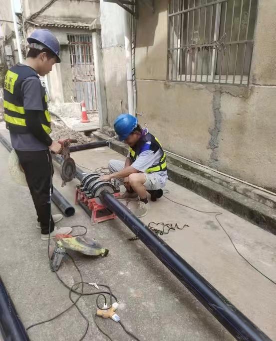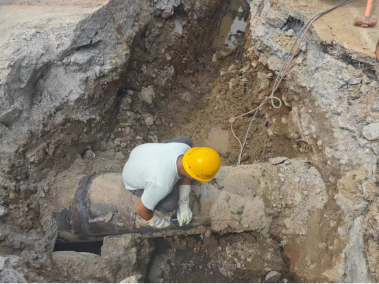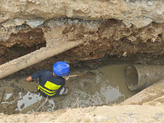 而與此同時,20多公里外,廣州路DN600供水管道遷改項目施工現(xiàn)場。工人們正在清理溝槽、焊割工對施工的管件進(jìn)行切割。。。。。。各工序正有條不紊的推進(jìn)。