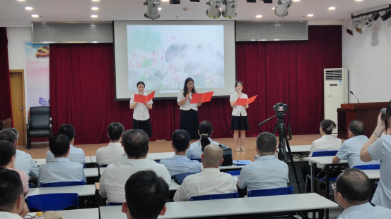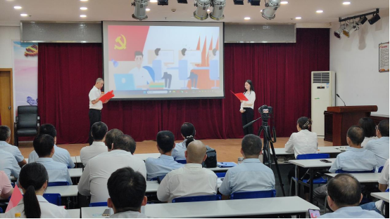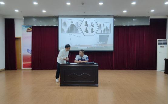 在講廉潔理念環(huán)節(jié),觀看廉潔微視頻《車輪下的腐敗》和誦讀《愛蓮說》清廉詩篇。四名職工緊密結(jié)合“污水變清水”的實(shí)際業(yè)務(wù),自編自導(dǎo)自演了一部廉潔從業(yè)情景劇。他們以身邊人為原型,演繹身邊事,生動(dòng)形象地教育引導(dǎo)全體員工要知敬畏、存戒懼、守底線,共同營造風(fēng)清氣正的工作氛圍。