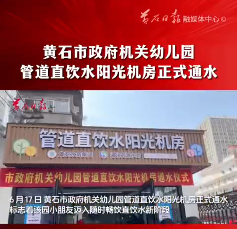 6月17日,綠蔭濃夏時節(jié),市政府機關(guān)幼兒園管道直飲水陽光機房迎來正式通水時刻。清澈健康的直飲水自此流入校園,標(biāo)志著該園小朋友告別傳統(tǒng)飲水模式,邁入隨時暢飲直飲水的新階段。
