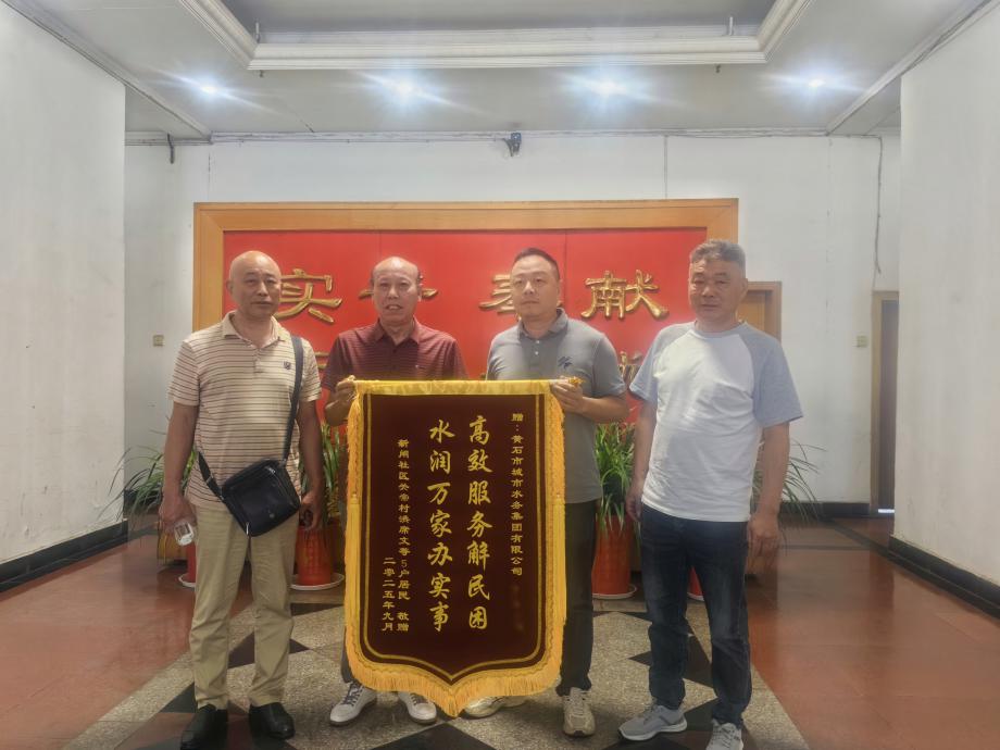 2025年9月23日,關(guān)帝村村民代表一行四人專(zhuān)程來(lái)到市水務(wù)集團(tuán)沈家營(yíng)辦公區(qū),將一面印有“高效服務(wù)解民困,水潤(rùn)萬(wàn)家辦實(shí)事”字樣的錦旗,鄭重交到黃石市水務(wù)集團(tuán)客服中心負(fù)責(zé)人手中,以此表達(dá)對(duì)水務(wù)集團(tuán)傾力解決他們多年用水難題的誠(chéng)摯謝意。這面錦旗的背后,是一段跨越行政區(qū)域界限、多方協(xié)作保障民生的暖心故事。