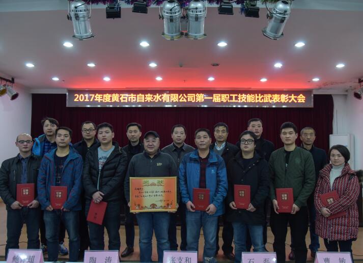 大會由公司副總經(jīng)理、工會主席張建華主持,公司總經(jīng)理張昌銳宣讀《關于2017年度公司第一屆職工技能比武的表彰決定》,在頒獎音樂聲中,“運行值班工”、“維修電工”工種前三名選手依次上臺領獎,其中每個工種的第一名石磊、陶濤獲得“崗位能手”榮譽稱號,張支和榮獲“優(yōu)秀師傅”,花湖水廠獲得“優(yōu)秀組織單位”。公司黨委書記、董事長余曦向職工技能比武中取得優(yōu)秀成績的選手表示祝賀。他強調(diào),一是要認真總結(jié)經(jīng)驗,進一步提高比武水平。這次職工技能比武是公司近十年來首次舉辦的一線職工的技能比武,是以檢驗能力、提高素質(zhì)為目的,要認真總結(jié)經(jīng)驗,完善比賽方案,提高競賽水平。二是形成人人勤學苦練,勵志成才的氛圍。公司將形成技能比武的長效機制,每年舉辦一次,參賽工種根據(jù)實際情況制定,對比武中獲得第一名的職工發(fā)放“崗位能手”津貼,榮獲“優(yōu)秀組織單位”的獎勵3000元培訓基金,??顚S?,加強職工的培訓學習力度,各單位應當認識到職工隊伍的現(xiàn)狀不能滿足公司發(fā)展的需求,在培訓中要注重理論與實際操作相結(jié)合,倡導師傅帶徒,積極做好傳幫帶,要促進職工在練中比,比中創(chuàng)優(yōu),立足崗位成才,實現(xiàn)人生價值。三是以職工技能比武為契機,狠抓落實,圓滿完成全年的各項任務。接近年底,廣大職工要立足本職崗位、自覺做好公司的各項工作,上下一心,銳意進取,為公司年度各項任務的完成作出貢獻。