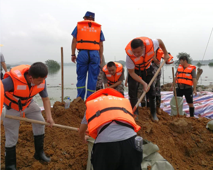7月9日,市自來水有限公司6名基干民兵服從黃石港區(qū)人武部統(tǒng)一調(diào)配,前往江北管理區(qū)策湖開展防汛工作。當天,趁著雨水暫歇,6名民兵同志冒著炎熱天氣不斷搬運沙石、加固堤壩,連續(xù)奮戰(zhàn)近8小時,全力以赴趕在下一輪降水前做好防汛準備,充分發(fā)揮了基干民兵能奉獻、能吃苦、能戰(zhàn)斗的優(yōu)良作風。