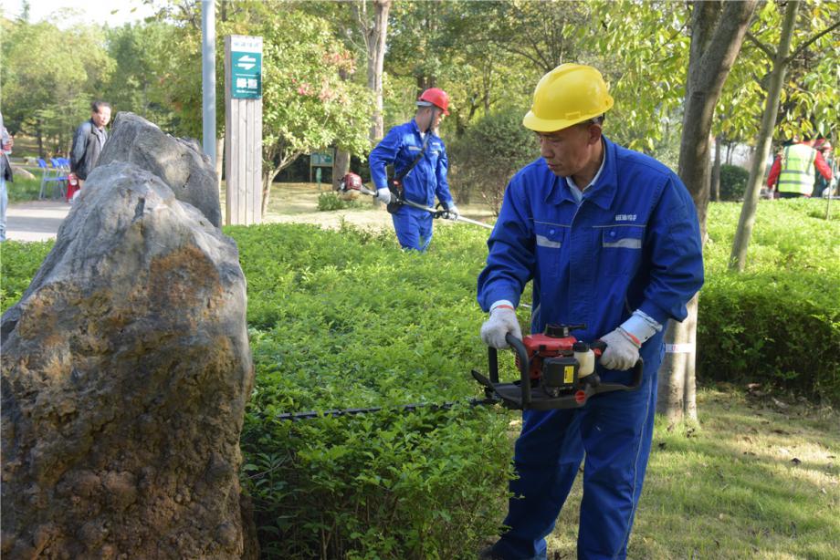 下午,園林綠化實(shí)操比賽在磁湖岸邊綠化帶舉行,11名選手經(jīng)過(guò)抽簽,隨機(jī)分配比賽樹(shù)木,進(jìn)行喬木、綠籬、灌木等修剪項(xiàng)目的比拼。