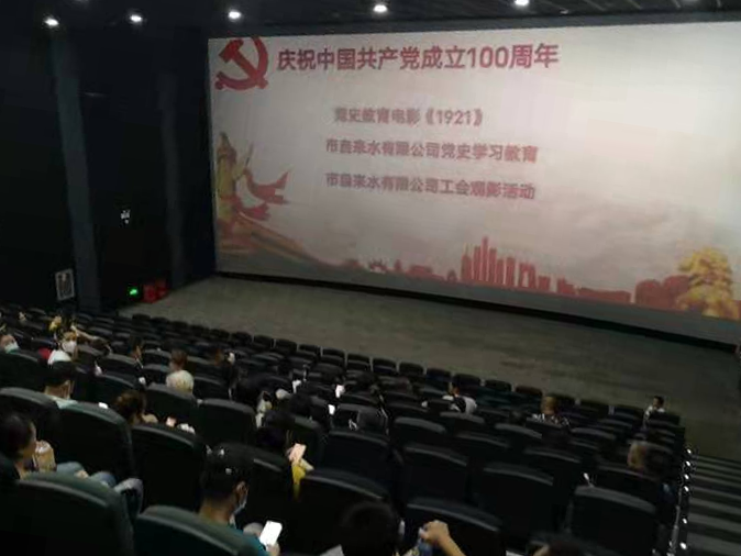 為慶祝中國共產(chǎn)黨成立100周年,引領公司廣大干部職工深入學習黨史,牢記黨的初心使命,7月3日—4日,市自來水有限公司工會分批次組織全體黨員干部職工觀看獻禮建黨100周年的歷史劇情電影《1921》。