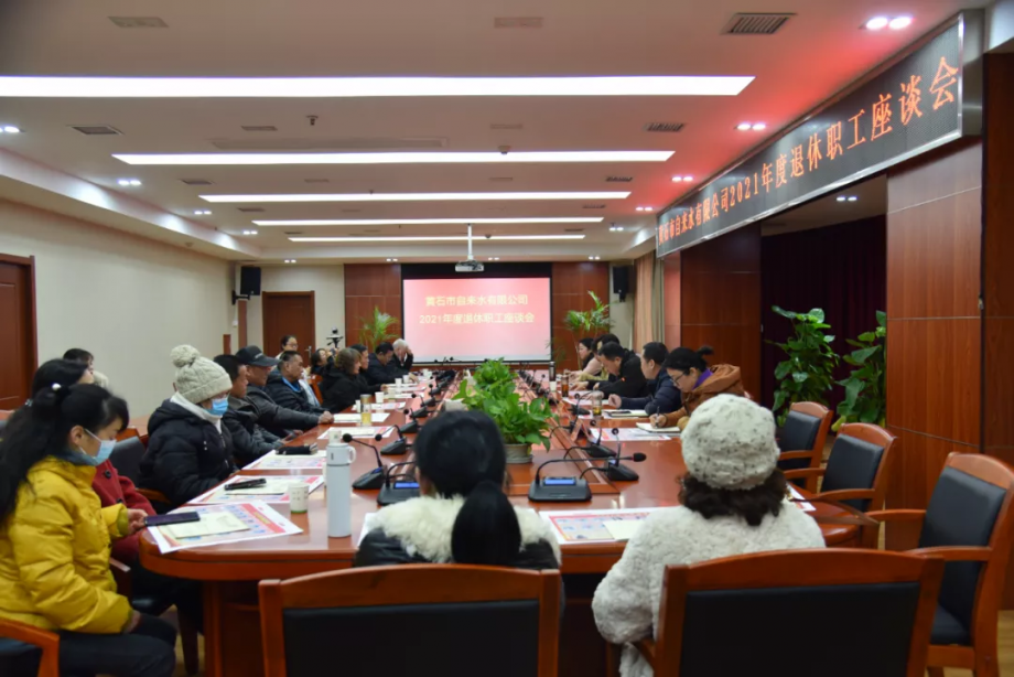 12月28日下午,市自來水有限公司在五樓會(huì)議室召開2021年度退休職工座談會(huì),熱烈歡送19名同志光榮退休。公司黨委書記、董事長余曦、總經(jīng)理張昌銳、紀(jì)委書記郭輝、副總經(jīng)理石碧峰、工會(huì)辦、人力資源部負(fù)責(zé)人參加座談。