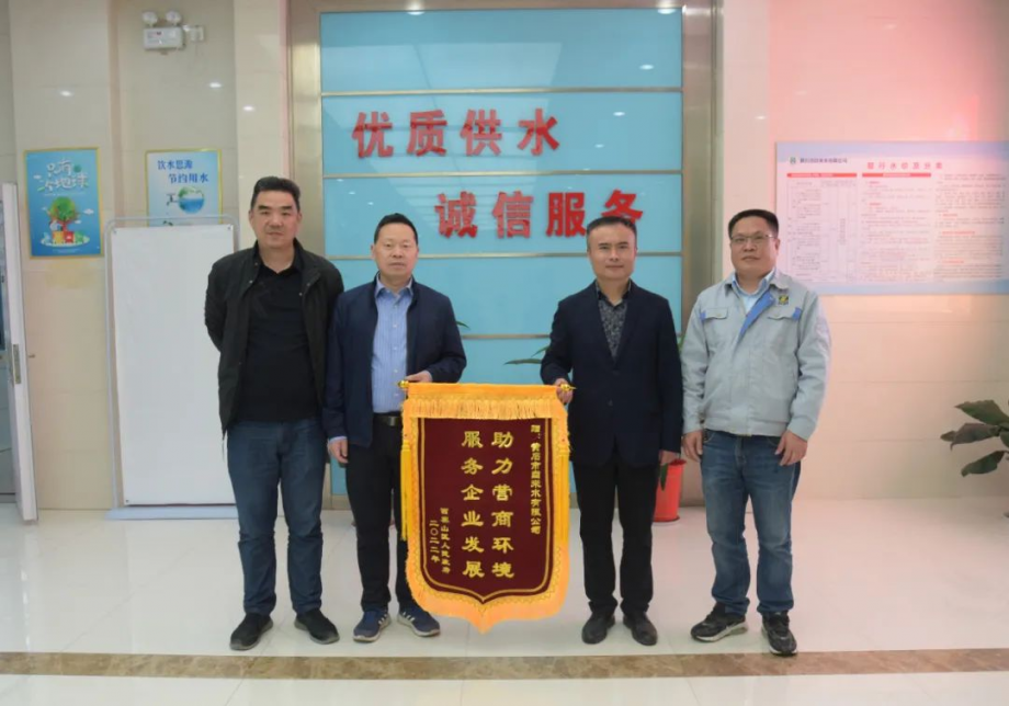 4月15日上午,西塞山區(qū)項目辦主任及企業(yè)代表將一面寫有“助力營商環(huán)境 服務企業(yè)發(fā)展”的錦旗送至黃石市自來水有限公司,“點贊”高效優(yōu)質(zhì)供水服務。