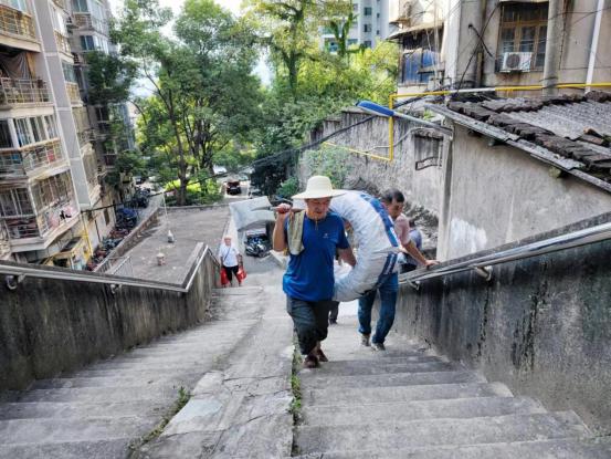 山頂距離城市供水主管網較遠,私房間間隔距離不一,通行僅靠石階步道,施工條件受限,市自來水有限公司根據現(xiàn)狀,決意在山下鳳凰山隧道旁DN160的PE管道上增加了一條200米的DN32PE補水管。7月16日,供水人山上山下兵分兩路,同時實施管道安裝,石階陡峭,他們肩挑手扛運送材料,烈日炙烤,大家在驕陽下?lián)]汗安裝。從清晨6時許至正午11時,兩組人一鼓作氣,順利碰通供水管,山頂居民打開水龍頭,又用上清亮潔凈的自來水,恢復了正常生活。