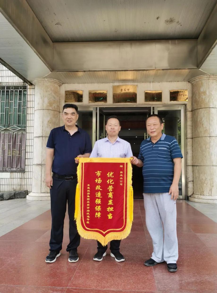 “感謝自來水公司及時為我們市場裝好水表,我們新市場才能按時開業(yè)”。7月28日上午,市東楚投資集團(tuán)農(nóng)貿(mào)市場改造專班將“優(yōu)化營商顯擔(dān)當(dāng) 市場改造強(qiáng)保障”錦旗送來市自來水有限公司,感謝該公司的“及時水”化解了農(nóng)貿(mào)市場的“喬遷憂”。